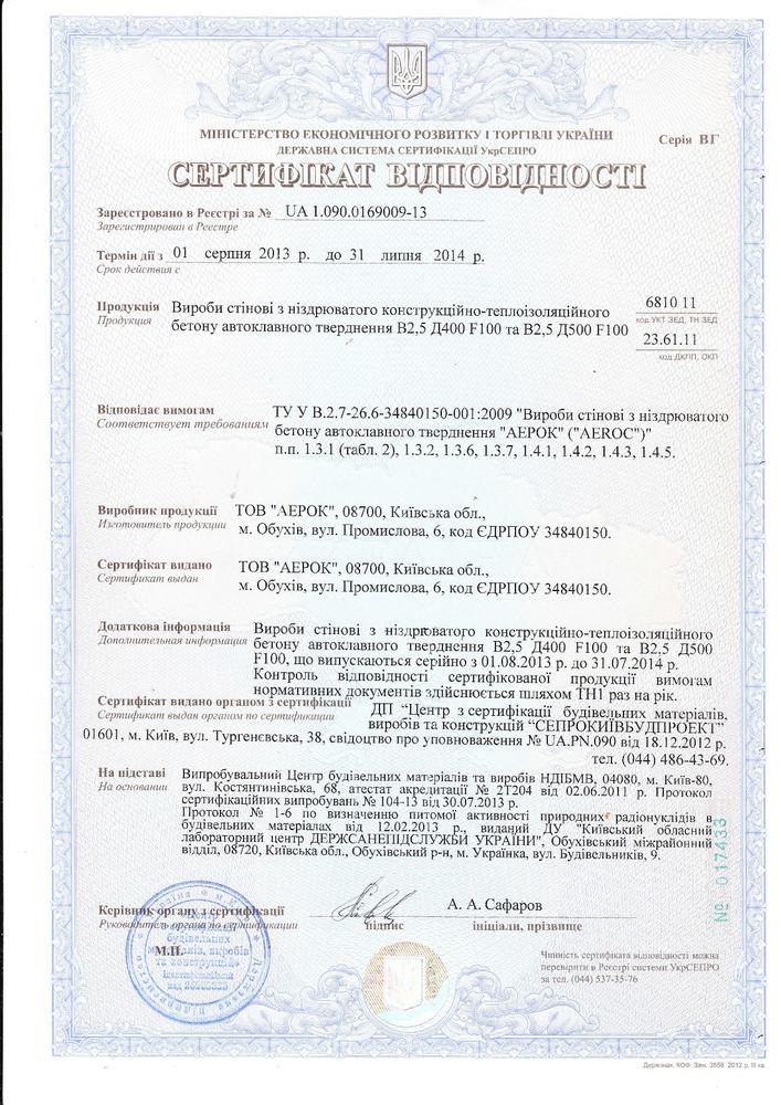 Газобетон Aeroc D400 300х250х625 мм